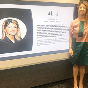 Joey has a psycho-educational approach to therapy introducing powerful concepts in psychology in an actionable format, facilitating change from the ‘inside out’ ie inner change leading to outer change by focusing on the ‘root cause’. Using proven therapeutic interventions and techniques, the counselling sessions provide meaningful psychological insights and emotional breakthroughs, enabling clients to address and overcome deep-rooted psychological issues that are acting as roadblocks in their life, increase their mental and emotional resilience and be their #BestSelf referred to as the 'actualised self’ in psychology. In addition to individual and couple therapy sessions Joey also conducts corporate mental health talks.